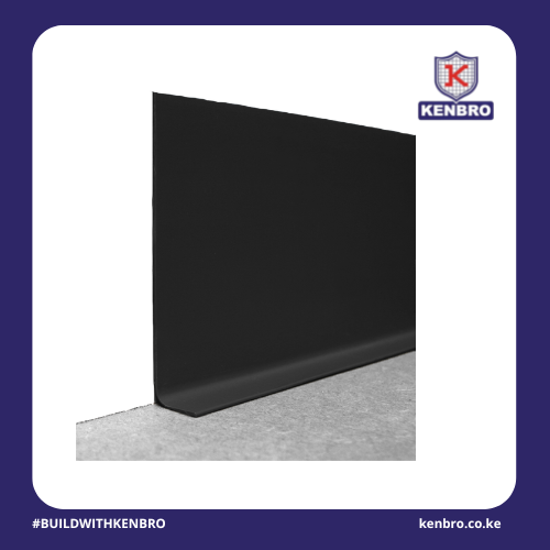 Black PVC Skirting fixed on the junction of the wall and floor.